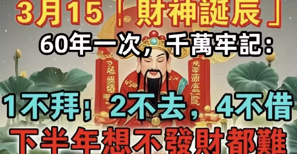 就在今天!農曆3月15「財神誕辰」,起床後牢記:1不拜,2不去,3不吃,4不借!納財迎福!