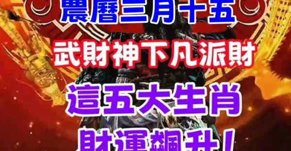 農曆三月十五, 武財神下凡派財,這五大生肖財運飆升!快來接財!