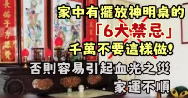 家中有擺放神明桌的「6大禁忌」,千萬不要這樣做!否則容易引起血光之災、家運不順~