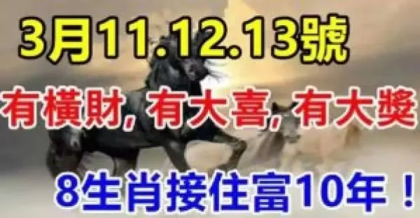 3月11.12.13日:八生肖接住富十年!有橫財,有大喜,有大獎