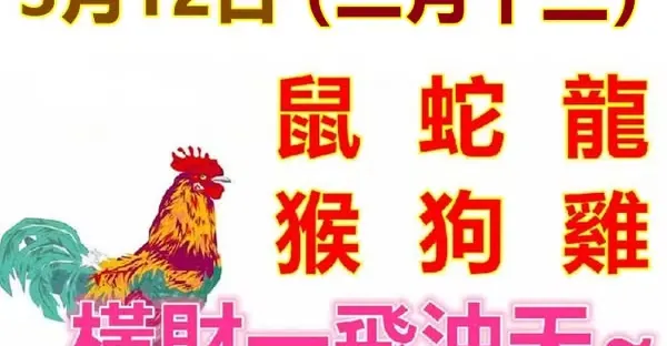 就在今天!「 3月12號 」 三生肖 最有頭獎運