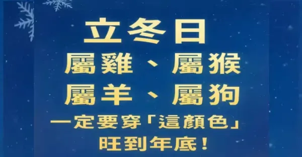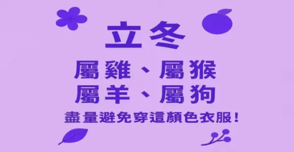 【立冬】屬雞、屬猴、屬羊、屬狗「儘量避免穿這顏色衣服」!