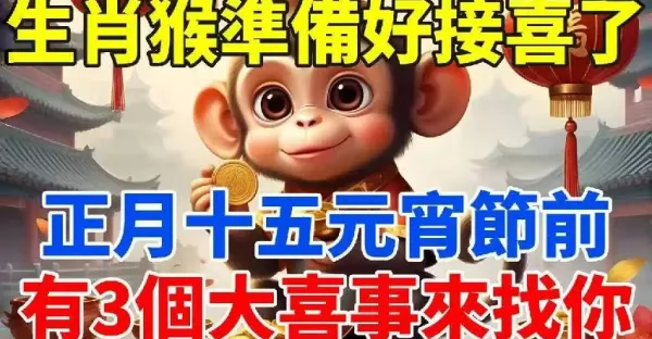 生肖猴請做好準備,正月十五元宵節前,將有3個大喜事來找你!家裡有屬猴的快來接