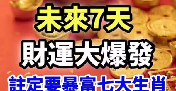 財如雨下!未來7天「財運大爆發」註定要暴富的七大生肖!