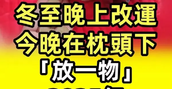 冬至晚上改運! 今晚在枕頭下「放一物」2025年招財進寶好運來。。