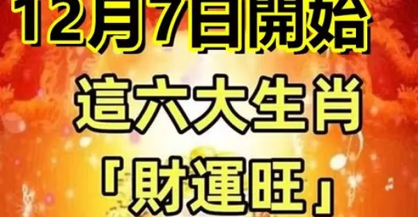 六大生肖運勢飄紅:12月6號偏財旺,7號發橫財,8號中頭獎 !