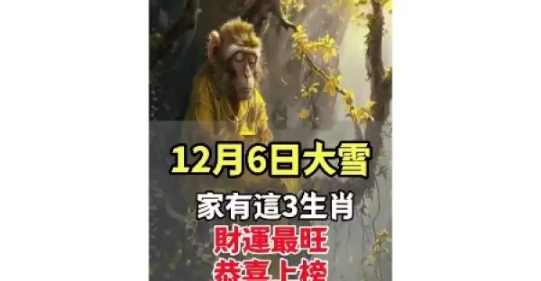 12月6號 大雪日最旺 「 三生肖 」 「 財運最好」越來越富