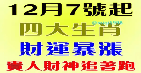 12月6 到 7號 (今天明天)三生肖財運偏旺,橫財進門