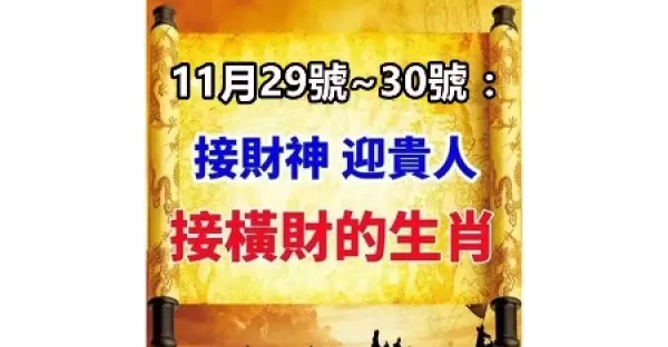 11月29號~30號:接財神 ,迎貴人,接橫財的生肖!