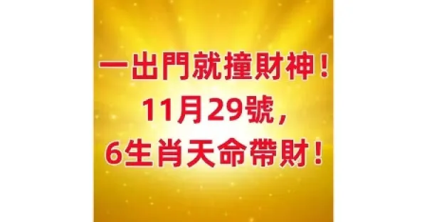 一出門就撞財神!11月29號,六生肖天命帶財!