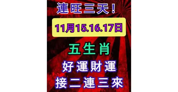 連旺三天!11月15.16.17日 五生肖 好運財運接二連三來