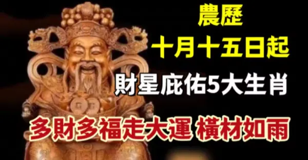 農曆十月十五日起,財星庇佑5大生肖,多財多福走大運,橫財如雨