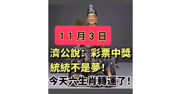 11月3日 濟公說:彩票中獎統統不是夢 ,今天六生肖轉運了 !