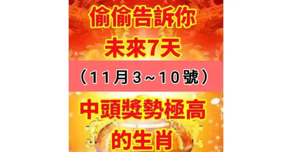 偷偷告訴你:未來七天(11月3 到 10號)中頭獎勢極高的生肖