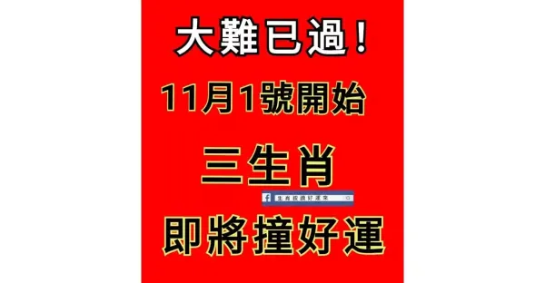 大難已過! 11月1號開始 三生肖 即將撞好運 !