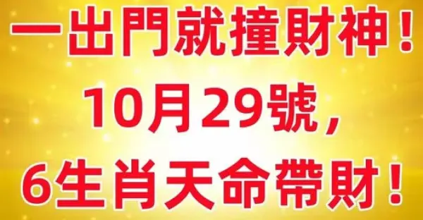 一出門就撞財神!10月29號,六生肖天命帶財!