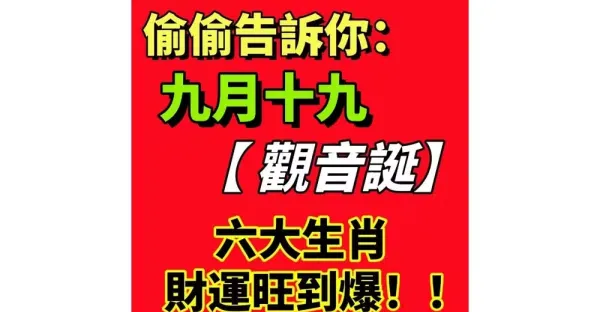 偷偷告訴你:六大生肖,九月十九【觀音誕】,財運旺到爆 !