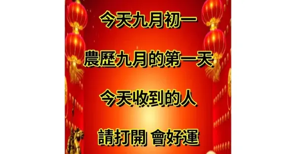 今天九月初一!農曆九月的第一天,今天收到的人請打開!會好運!