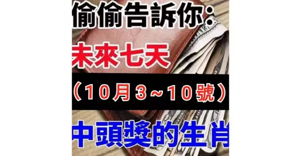 偷偷告訴你:未來七天(10月3 到 10號)中頭獎勢極高的生肖