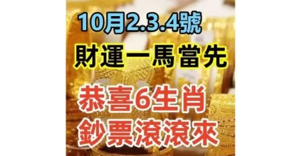 10月2.3.4號財運一馬當先,恭喜6大生肖鈔票滾滾來!