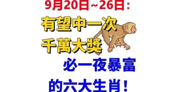 9月20日~26日:有望中一次千萬大獎 ,必一夜暴富的生肖 !