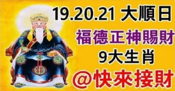 9月19.20,21大順日,福德正神賜財,九大生肖請接財!
