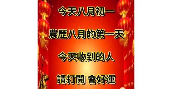 今天八月初一!農曆八月的第一天,今天收到的人請打開來看!會好運!