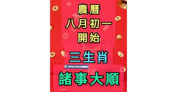 農曆八月初一開始 三生肖 諸事大順