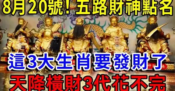 真的來了!8月20號!五路財神爺點名,這5大生肖要發財了,天降橫財3代花不完,往後要財運亨通一輩子了