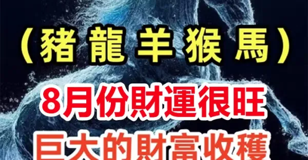 (豬 龍 羊 猴 馬)8月份財運很旺,巨大的財富 收穫,幫他們轉一下!