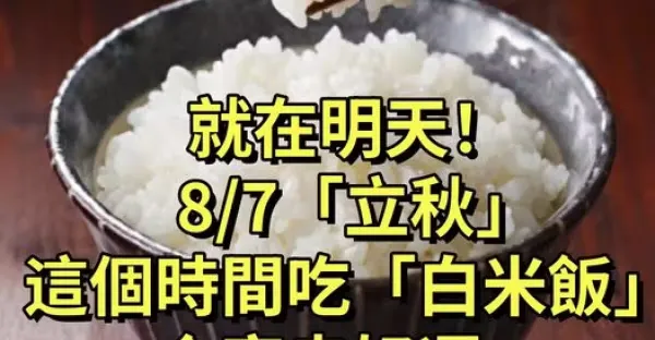 就在明天! 8/7「立秋」這個時間吃「白米飯」全家走好運,財運旺一整年!