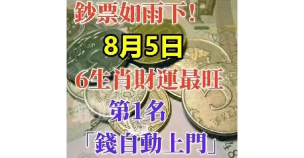 鈔票如雨下!8月5日,6生肖財運最旺,第1名「錢自動上門」