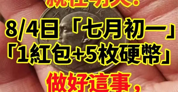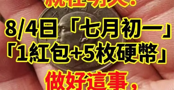 就在明天! 8/4日「七月初一」準備「1個紅包+5枚硬幣」做好這事,招橫財走好運!
