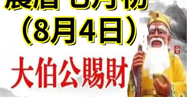 農暦七月初一(8月4日)大伯公賜財,六大生肖接財接吉!
