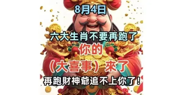 這六大生肖不要再跑了,8月4日你的(大喜事)來了,再跑財神爺追不上你了!
