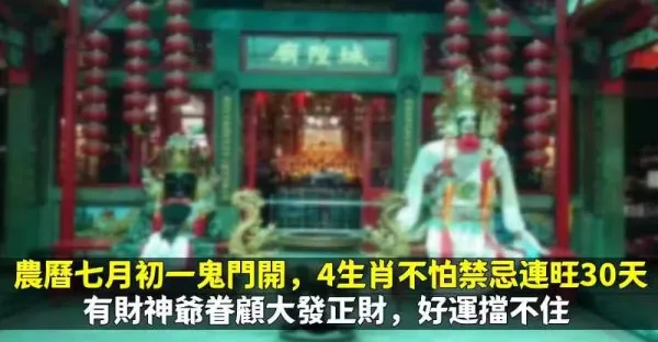 農曆七月初一鬼門開,4生肖不怕禁忌連旺30天,有財神爺眷顧大發正財,好運擋不住