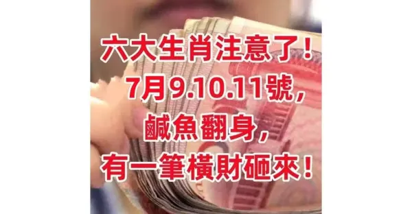7月9.10.11號,鹹魚翻身,有一筆橫財砸來的生肖!