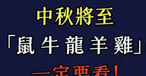 中秋將至「屬鼠 屬牛 屬龍 屬羊 屬雞」一定要看