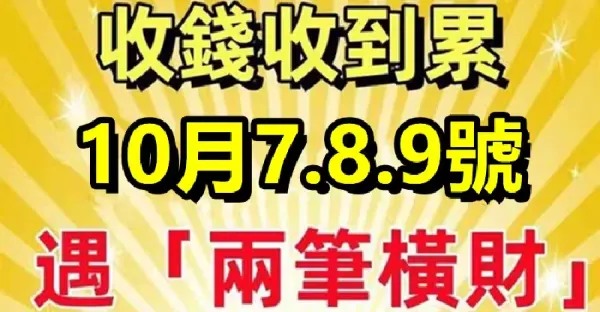 收錢收到累!10月7.8.9號遇「兩筆橫財」五大生肖日子一順百順