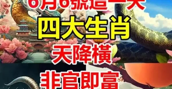 六大生肖運勢飄紅:6月6號偏財旺,7號發橫財,8號中頭獎!