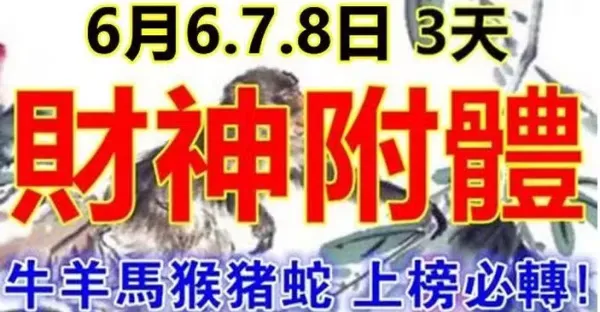 6月6.7.8日三天財神爺附體,橫財大發大賺的六生肖