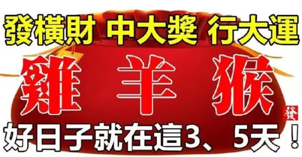 好日子就在這3、5天(雞 羊 猴)發大橫財、中大獎、行大運