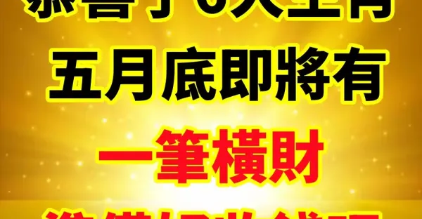 恭喜了6大生肖, 五月底即將有一筆橫財!準備好收錢吧!