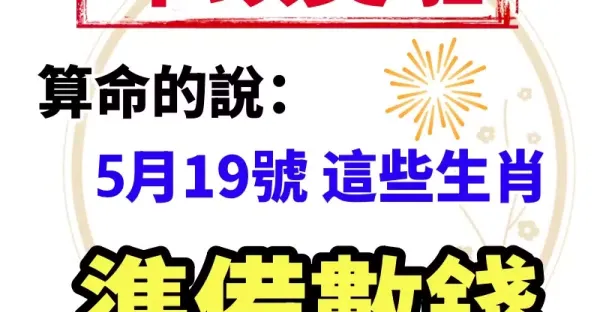 5月19日一筆橫財入命,八個生肖財運當頭,徹底翻身!