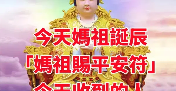 今天媽祖誕辰「媽祖賜平安符」今天收到的人,請打開!發財平安「快接住」!