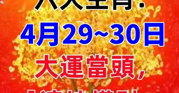 算命師說:4月29.30號大獎上門,橫財遍地的生肖