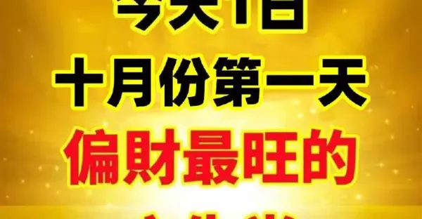 今天1日(十月份第一天)偏財最旺的六生肖