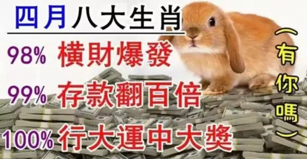 四月份橫財爆發,行大運中大獎,存款翻百倍,必大富特富的生肖