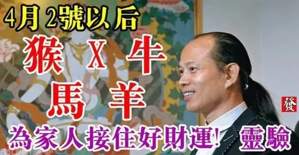 4月2號以後生肖(猴、X、牛、馬、羊)不得了,為家人接住好財運