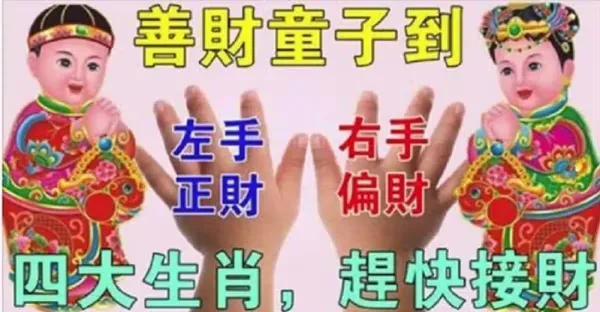 財神派善財童子發財來了,左手正財右手偏財,四大生肖快快接駕